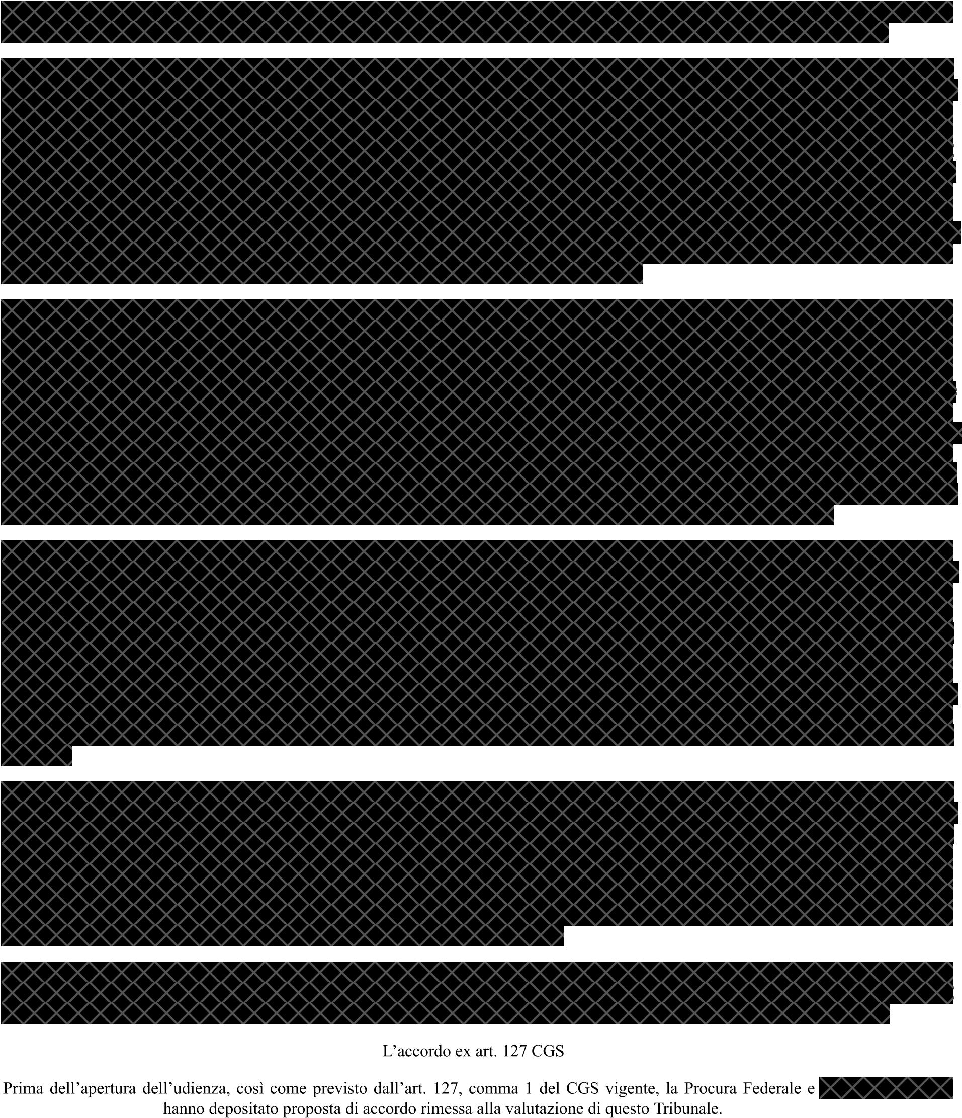 Prima dell’apertura dell’udienza, così come previsto dall’art. 127, comma 1 del CGS vigente, la Procura Federale e il sig. Michele Ciccone hanno depositato proposta di accordo rimessa alla valutazione di questo Tribunale.